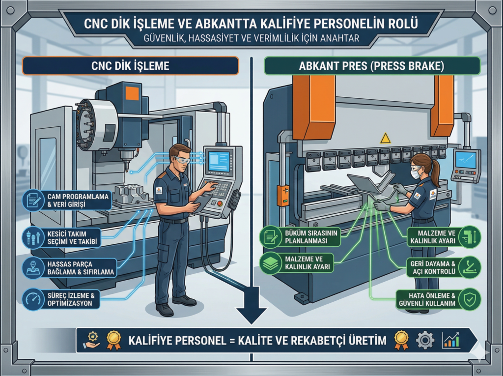 Verimlilik Kaybı ve Hatalı Üretim: Teknik bilgi eksikliği, makinelerin (örneğin CNC veya Abkant presler) verimli kullanılamamasına, hatalı parçaların üretilmesine ve dolayısıyla maliyetlerin katlanmasına neden olur.